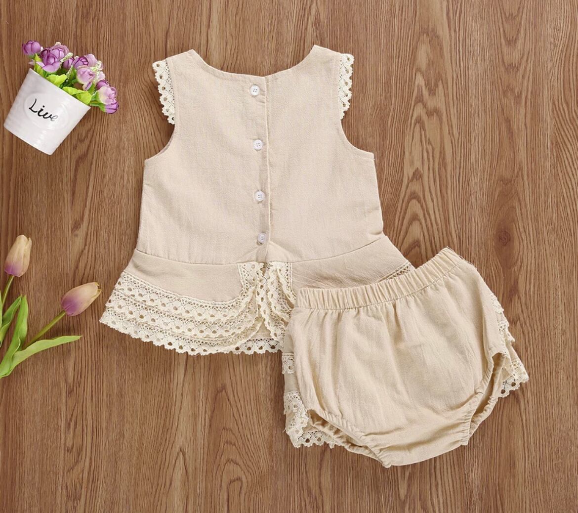 レースの可愛いナチュラルなトップスとショーツのセット販売です。